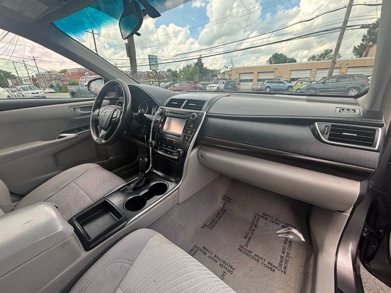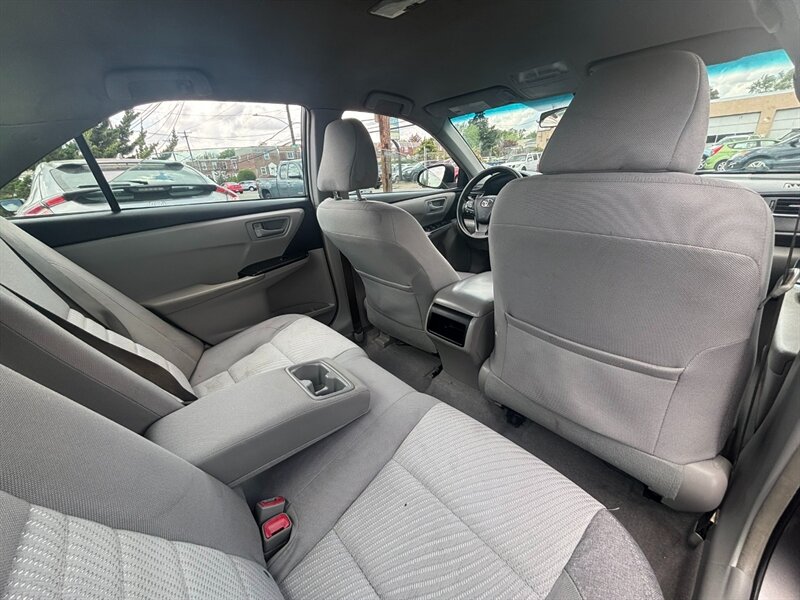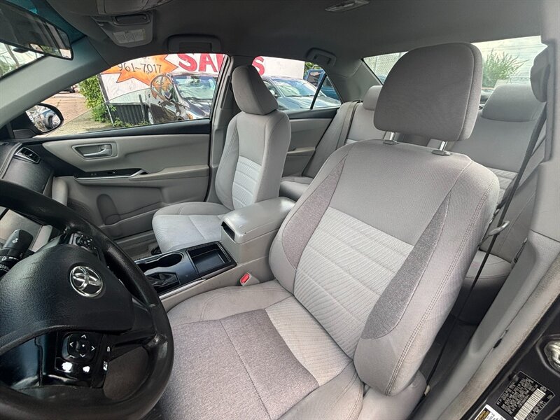 This 2017 Toyota Camry LE comes equipped with a powerful 2.5L I4 engine delivering 178hp and 170ft. lbs. of torque. The exterior is finished in a sleek Predawn Gray Mica, complemented by an interior featuring Ash cloth upholstery. Factory default features include a user-friendly infotainment system, Bluetooth connectivity, keyless entry, power-adjustable driver's seat, and a rearview camera for added convenience and safety. With a fuel efficiency of 24 MPG in the city and 33 MPG on the highway, this vehicle is in excellent overall condition, making it a reliable choice for daily commutes or road trips.